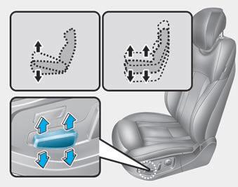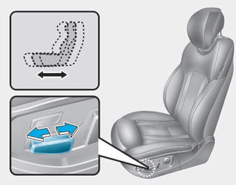 Переднее сиденье можно отрегулировать с помощью переключателей управления, расположенных на снаружи подушки сиденья. До вождения, отрегулируйте сиденье в правильном положение так, чтобы вы могли легко контролировать руль, педали и органы управления на панели приборов.