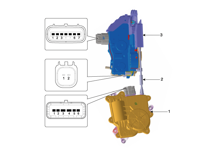 Hyundai Genesis (DH) 2013-2016 Руководство по ремонту / Электрическая система кузова / Замки с электроприводом / Приводы дверных замков с электроприводом Компоненты и расположение компонентов