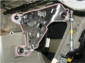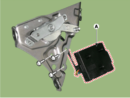 Снимите модуль багажника с электроприводом и блок привода (A), предварительно отсоединив разъем, болты и гайки.