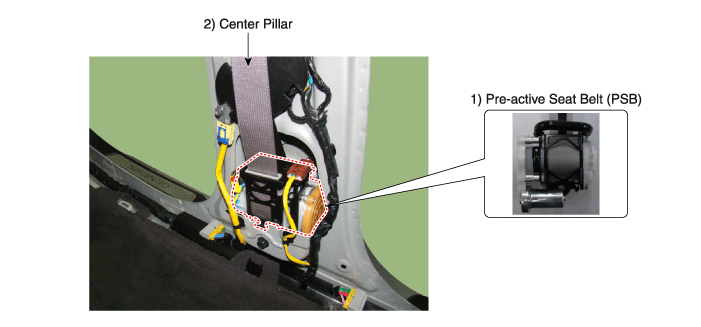 Hyundai Genesis: Преднатяжитель ремня безопасности / Pre-activeSeat Belt (PSB) Компоненты и расположение компонентов