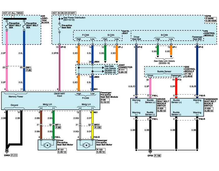 Hyundai Genesis: схематические схемы преднатяжителя ремня безопасности / Pre-activeSeat Belt Unit (PSB)