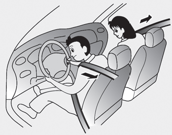 Ремни безопасности с предварительным натяжением (Втягивающий преднатяжитель ремня безопасности и устройство аварийного крепления) эта неисправность может не защитить вы должным образом во время аварии. Примите следующие меры предосторожности: