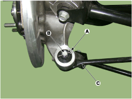 Снимите шплинт (A) и гайку (B). С помощью SST (09568-2J100) отделите вспомогательный рычаг (C).
