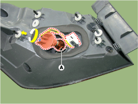 Снимите лампу (А) после отделения внутреннего заднего комбинированного фонаря в сборе.