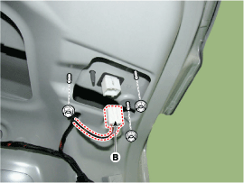 Снимите внутренний задний комбинированный фонарь в сборе (A), предварительно ослабив гайки (3EA) и отсоединив разъем.