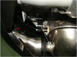 Снимите болт (A) и резиновую подвеску (B), (C), чтобы отделить глушитель.