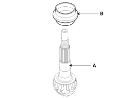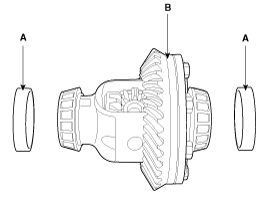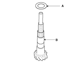 Установите прокладку подшипника ведущей шестерни (В) на ведущую шестерню ведущей шестерни (А).