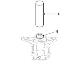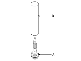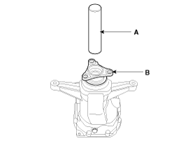 Используя круглую трубу (A), запрессуйте передний подшипник (B).