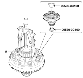 Снимите боковые подшипники с помощью SST (09530-3T200 или 09530-3C100).