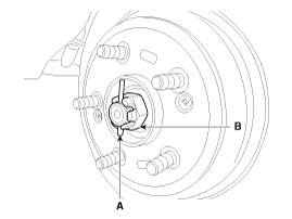При включенном тормозе снимите шплинт (А) с задней ступицы и снимите корончатую гайку (В).