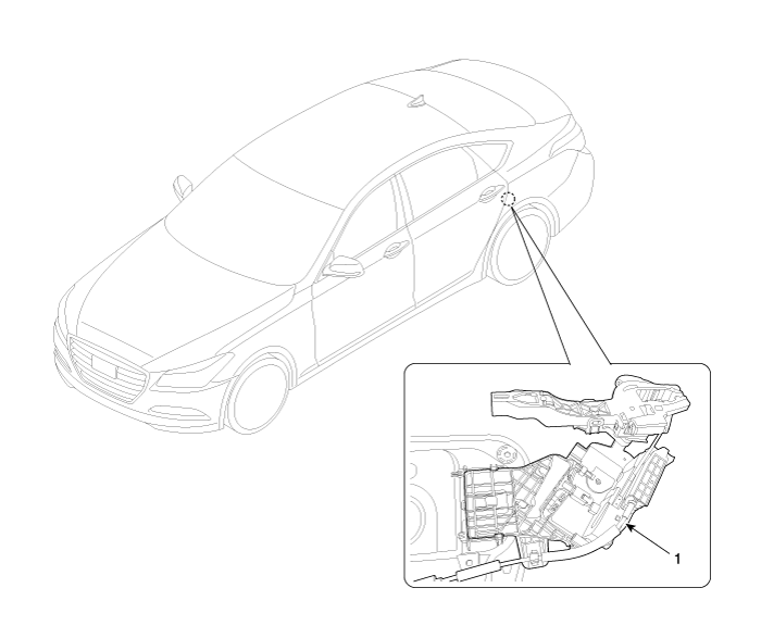 Hyundai Genesis: Компоненты и расположение компонентов задней двери / защелки задней двери