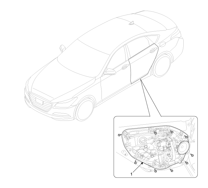 Hyundai Genesis: Компоненты и расположение компонентов задней двери / модуля задней двери
