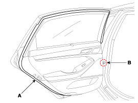 Отсоедините зажимы, затем снимите боковой уплотнитель задней двери (A).