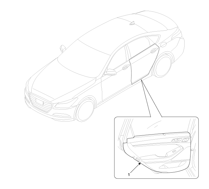 Hyundai Genesis: Компоненты задней двери / обшивки задней двери и расположение компонентов
