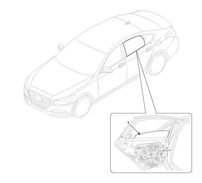 Hyundai Genesis: Компоненты и расположение компонентов стекла задней двери / окна задней двери