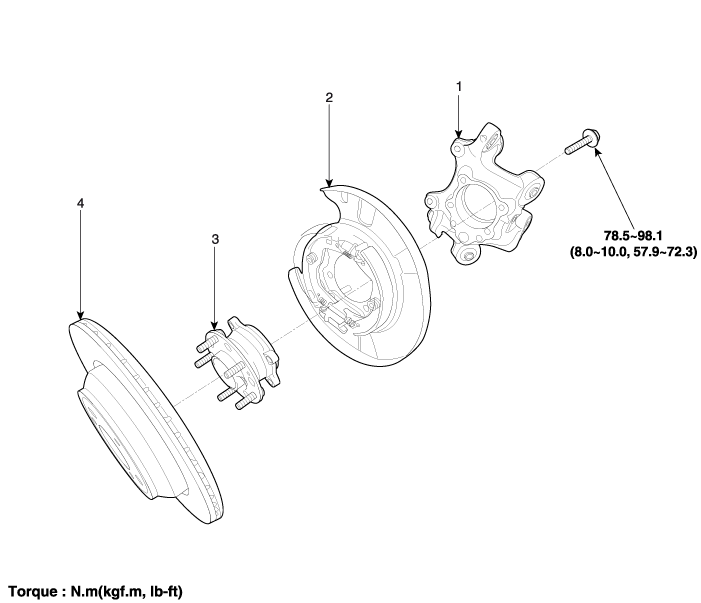 Hyundai Genesis (DH) 2013-2016 Руководство по ремонту / Карданный вал и ось / Задний мост в сборе / Задняя ступица — компоненты багажника и расположение компонентов