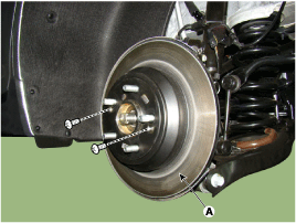 Ослабьте болт крепления датчика скорости колеса и снимите датчик (А).