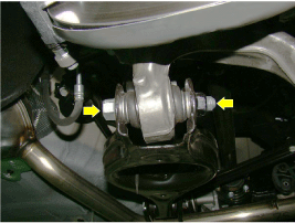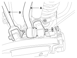 (1) Ослабьте болт и гайку и снимите переднюю часть заднего верхнего рычага (B).