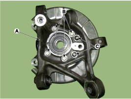 Выверните крепежный болт узла ступицы (B), (C), а затем отделите подшипник задней ступицы от заднего водила.