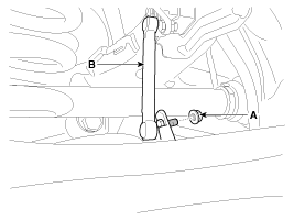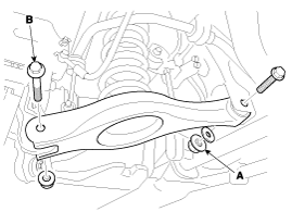 Ослабьте крепежный болт и гайку (A, B) и снимите задний нижний рычаг.