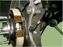 Снимите болт кронштейна датчика скорости вращения колеса и датчик скорости вращения колеса (А).