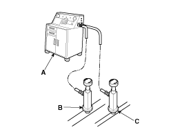 сервисный порт (C) и сервисный порт низкого давления (B), как показано,