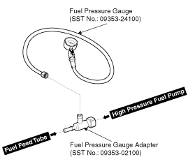 Осмотрите топливопровод и соединительные детали SST на наличие утечек при включенном зажигании.