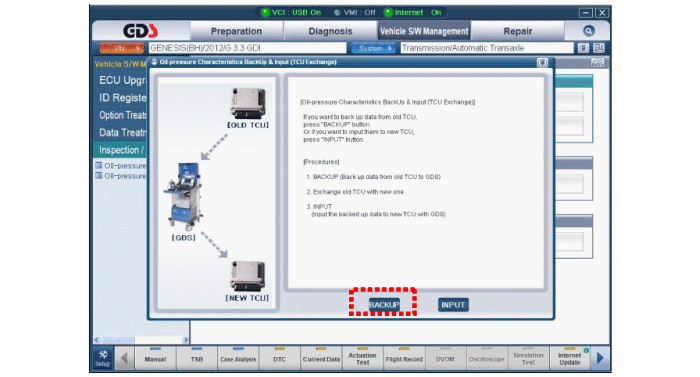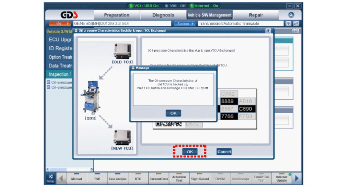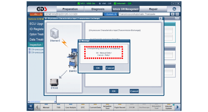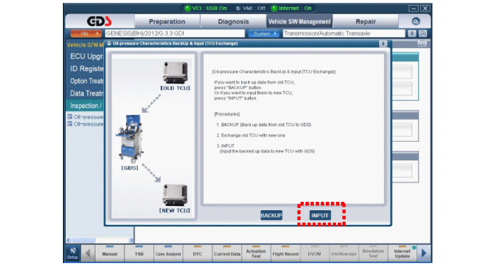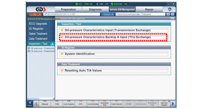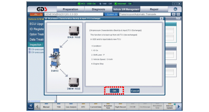 В случае удара при переключении передач или замены деталей, связанных с трансмиссией, следует выполнить End Of Line (EOL).