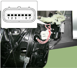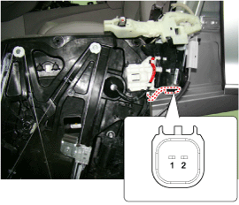 Выполните процедуру сброса заклепки в случае неисправности запирание дверной защелки с электроприводом (автоматический полный запирание). (1) Процедура сброса зажима завершается «Отключите питание». предохранитель двери > Установить предохранитель двери > ЗАЖИГАНИЕ ВКЛЮЧЕНО".