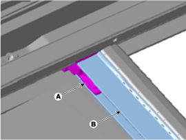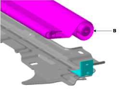 Выньте рулонную штору (В) из паза (А) со стороны кронштейна рулонной шторы.