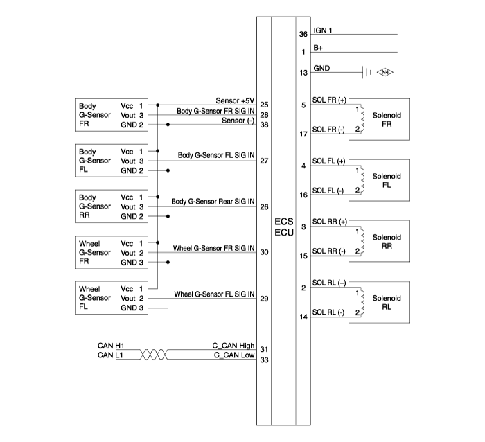 Hyundai Genesis: система ECS (электронное управление подвеской) / принципиальные схемы