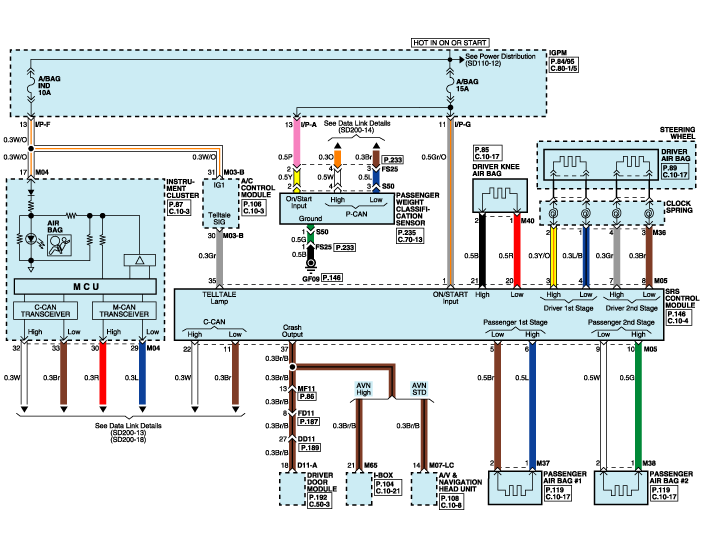 Датчик бокового удара-Передний,Пассажирский-Низкий (-)
