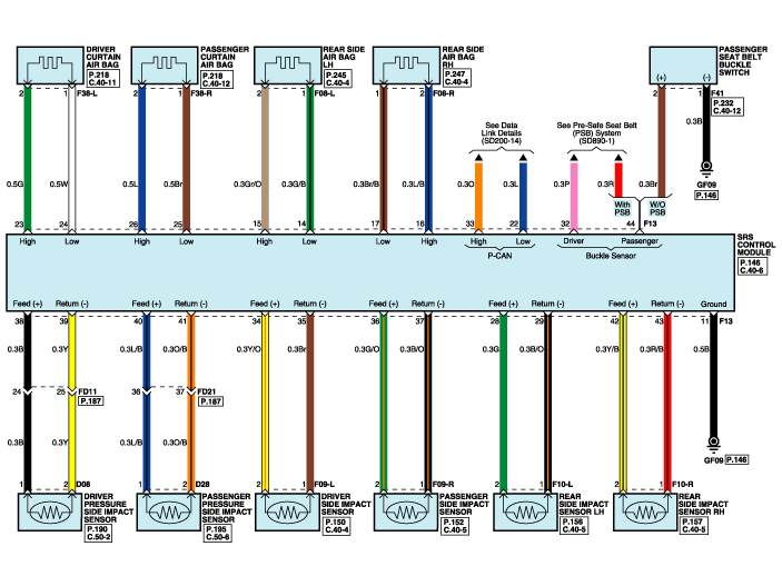 Датчик бокового удара-Задний,Пассажирский-Низкий (-)