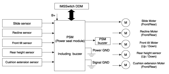 блок сиденья с электроприводом с помощью переключателя IMS. В случае положения