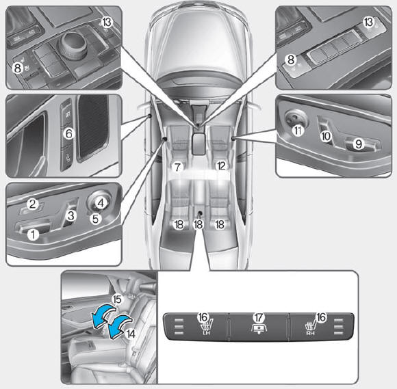 (13) Обогрев сиденья/подогрев и охлаждение сиденья (по воздуху)