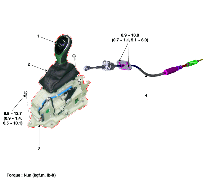 Hyundai Genesis: система управления автоматической коробкой передач / компоненты рычага переключения передач и их расположение