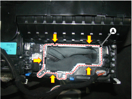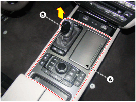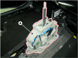 Снимите узел рычага переключения передач (А), отвернув четыре болта.