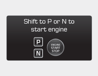 Hyundai Genesis: Предупреждающие сообщения / Переключение на «P» или «N», чтобы запустить двигатель