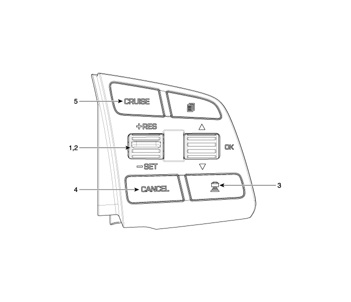 Hyundai Genesis (DH) 2013-2016 Руководство по ремонту / Электрическая система двигателя / Умная система круиз-контроля / Компоненты и расположение компонентов переключателя интеллектуального круиз-контроля