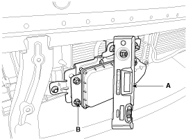 Снимите узел интеллектуального круиз-контроля (А) с автомобиля, предварительно ослабив крепежные болты.