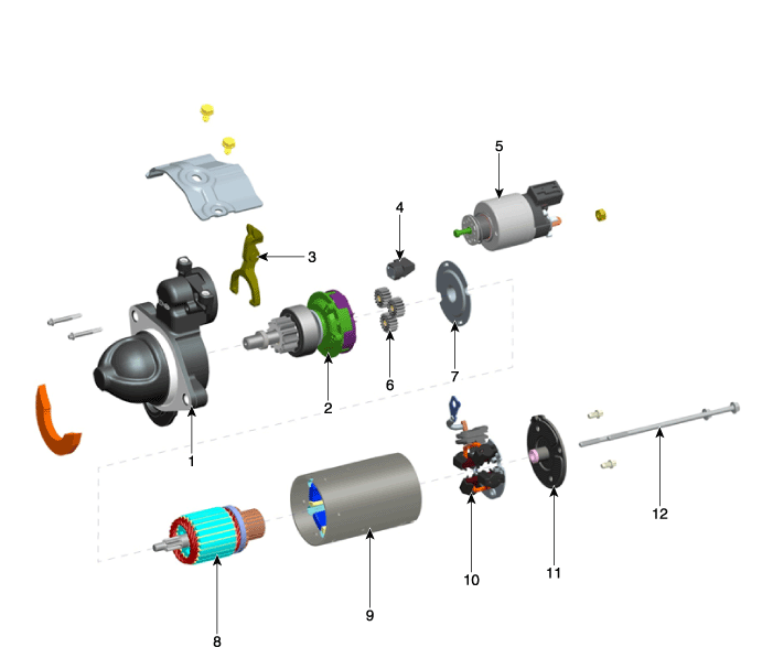 Hyundai Genesis: система запуска / компоненты стартера и расположение компонентов