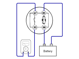 Подайте 12 В между клеммами 85 и 86, а затем проверьте целостность цепи между клеммами 30 и 87.