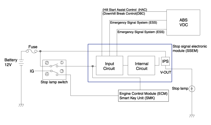 Hyundai Genesis (DH) 2013-2016 Руководство по ремонту / Тормозная система / Тормозная система / Принципиальные схемы электронного модуля стоп-сигнала