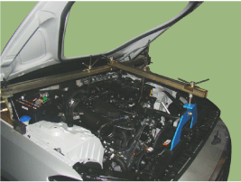 Используя приспособление для поддержки двигателя (SST №: 09200-38001, 09200-2S100, 09200-2S200), надежно удерживайте двигатель в сборе.