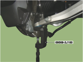 Ослабьте гайку и снимите боковой рычаг с помощью SST (09568-2j100).