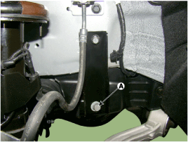 Ослабьте болт кронштейна датчика скорости вращения колеса и отсоедините разъем датчика скорости вращения колеса (А).