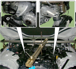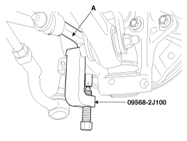Снимите натяжной рычаг (A) с поворотного кулака с помощью SST (09568-2J100).