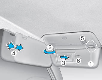 Чтобы использовать солнцезащитный козырек, потяните его вниз.