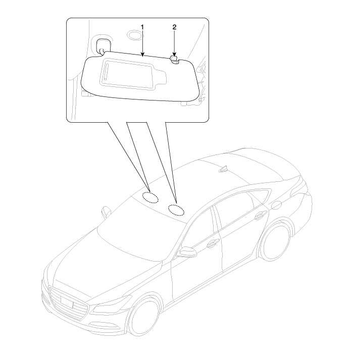 Hyundai Genesis (DH) 2013-2016 Руководство по ремонту / Кузов (внутри и снаружи) / Отделка крыши / Компоненты солнцезащитного козырька и расположение компонентов