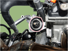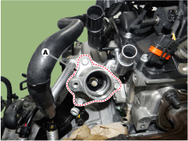 Снимите впускной патрубок охлаждающей жидкости (А).